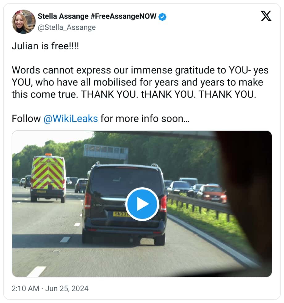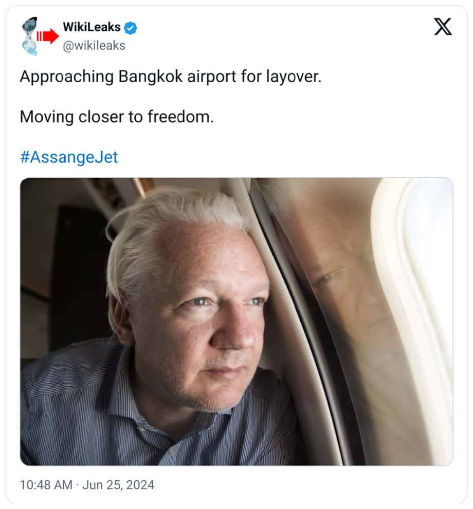 Julian Assange est libre. À l’heure où ces lignes sont écrites, il est en route pour les îles Mariannes du Nord — un territoire des États-Unis situé dans le Pacifique occidental — afin de finaliser un accord avec le gouvernement US qui lui vaudra d’être condamné au temps déjà passé à la prison de Belmarsh. À moins que l’empire ne se livre à des manigances louches au cours du processus, Assange retournera ensuite dans son pays d’origine, l’Australie, en homme libre.