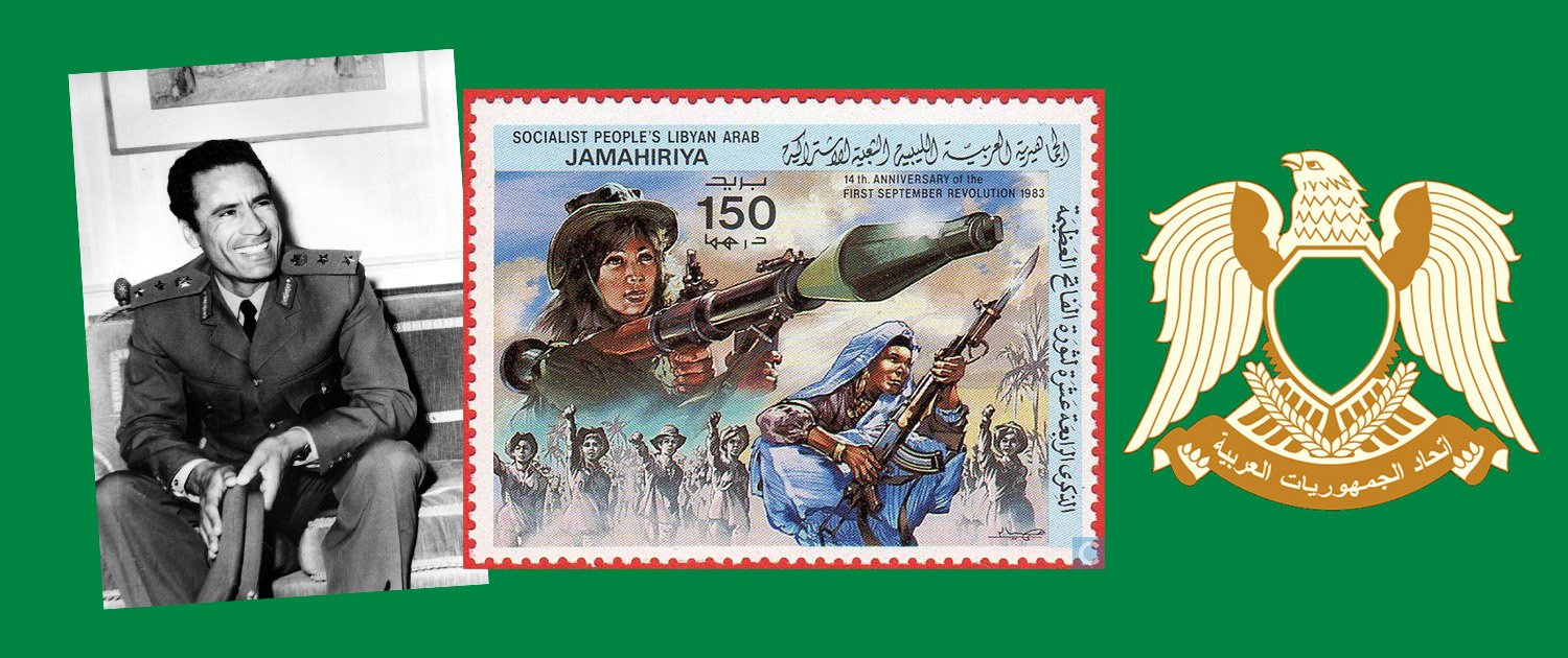 Au milieu de l’année 1969, le roi Idris passe ses vacances d’été dans les stations balnéaires de Grèce et de Turquie. Le roi étant hors du pays, les officiers libres estiment que c’est le moment de frapper. Le 1er septembre 1969, un coup d’État révolutionnaire, dont le nom de code est Opération Jérusalem, est déclenché. Les officiers libres prennent le contrôle de tous les aéroports, des dépôts de police, des stations de radio et des administrations publiques de Benghazi et de Tripoli ; le prince héritier est alors arrêté. Kadhafi annonce l’abolition de la monarchie, la condamnant comme réactionnaire et corrompue, et proclame la création de la République arabe libyenne, fondée sur les principes de liberté, de socialisme et d’unité. La révolution est, comme prévu, accueillie par la liesse du peuple libyen.