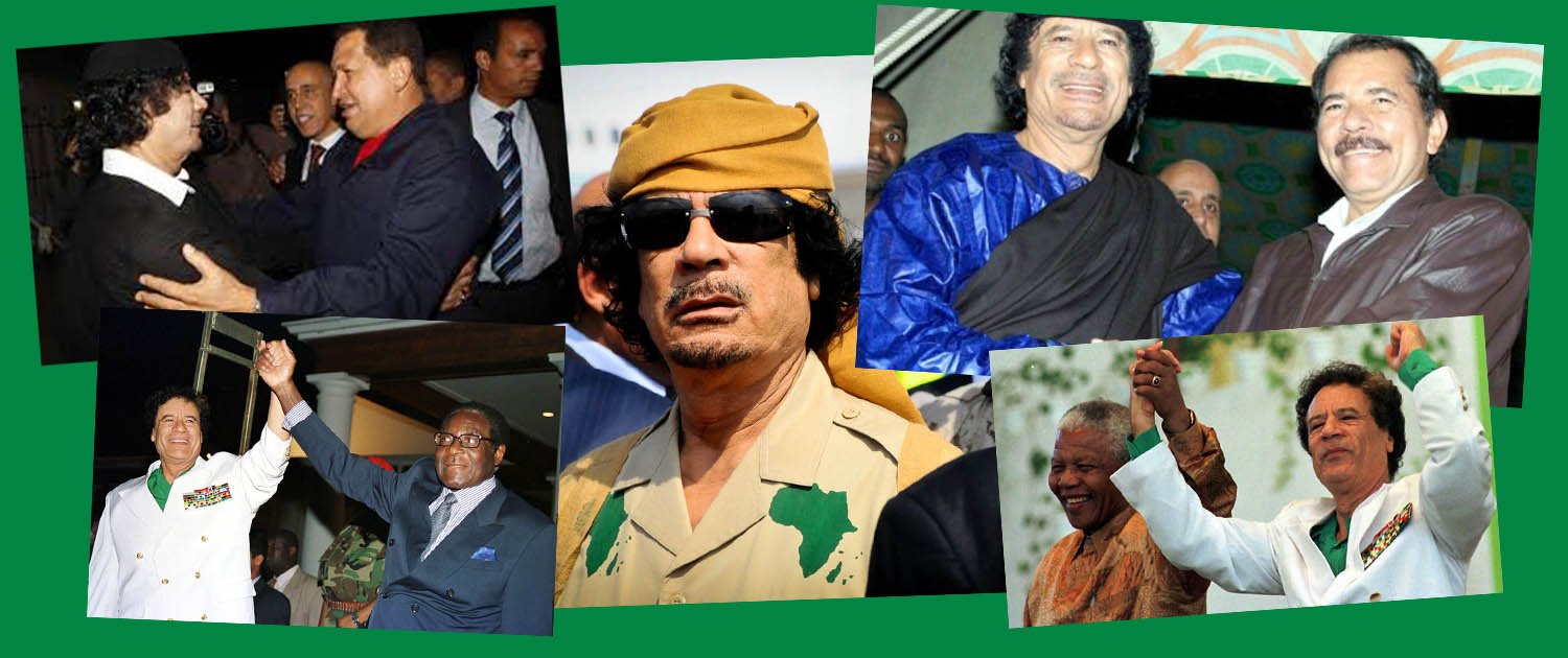 Il est également intéressant de noter que tout au long des années 2000, la Libye tisse des liens très étroits avec des dirigeants de gauche latino-américains, tels que le Vénézuélien Hugo Chávez, l’Équatorien Rafael Correa et Daniel Ortega, le leader du Front sandiniste de libération nationale (un mouvement de libération que Kadhafi a soutenu pendant la révolution nicaraguayenne), aujourd’hui président du Nicaragua. En fait, lors d’une visite en Libye en 2008, le président socialiste bolivien Evo Morales fait l’éloge du socialisme libyen, de la troisième théorie universelle et du Livre vert, en déclarant : « J’ai lu Le Livre vert, je l’ai étudié et je suis enthousiasmé par la pensée énoncée dans Le Livre vert ». Lors d’une visite au Venezuela en 2009, Kadhafi propose, avec Chávez, l’« Organisation du traité de l’Atlantique Sud », une alternative anti-impérialiste à l’OTAN pour le tiers-monde. Kadhafi et Chávez signent également une déclaration exhortant le monde à redéfinir le terrorisme et à ne pas classer les luttes légitimes pour l’autodétermination et la liberté comme du « terrorisme ».